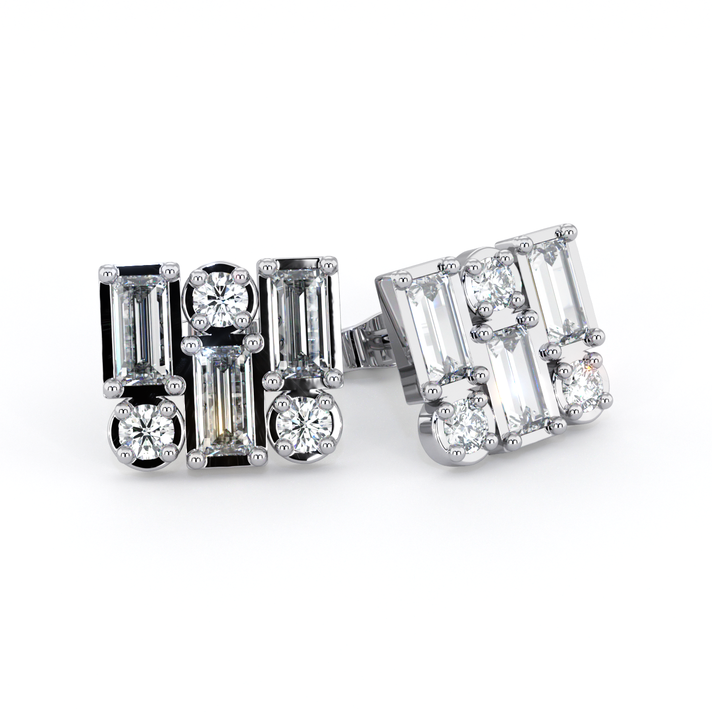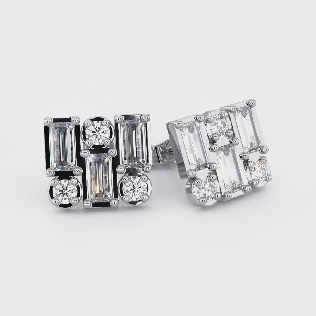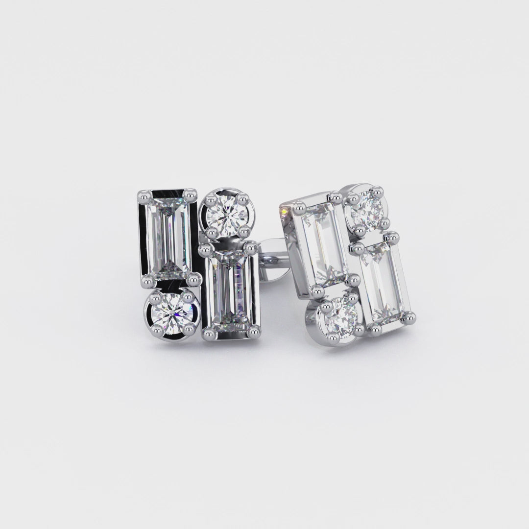 BAGUETTE | Round & Baguette Double Diamond Earrings