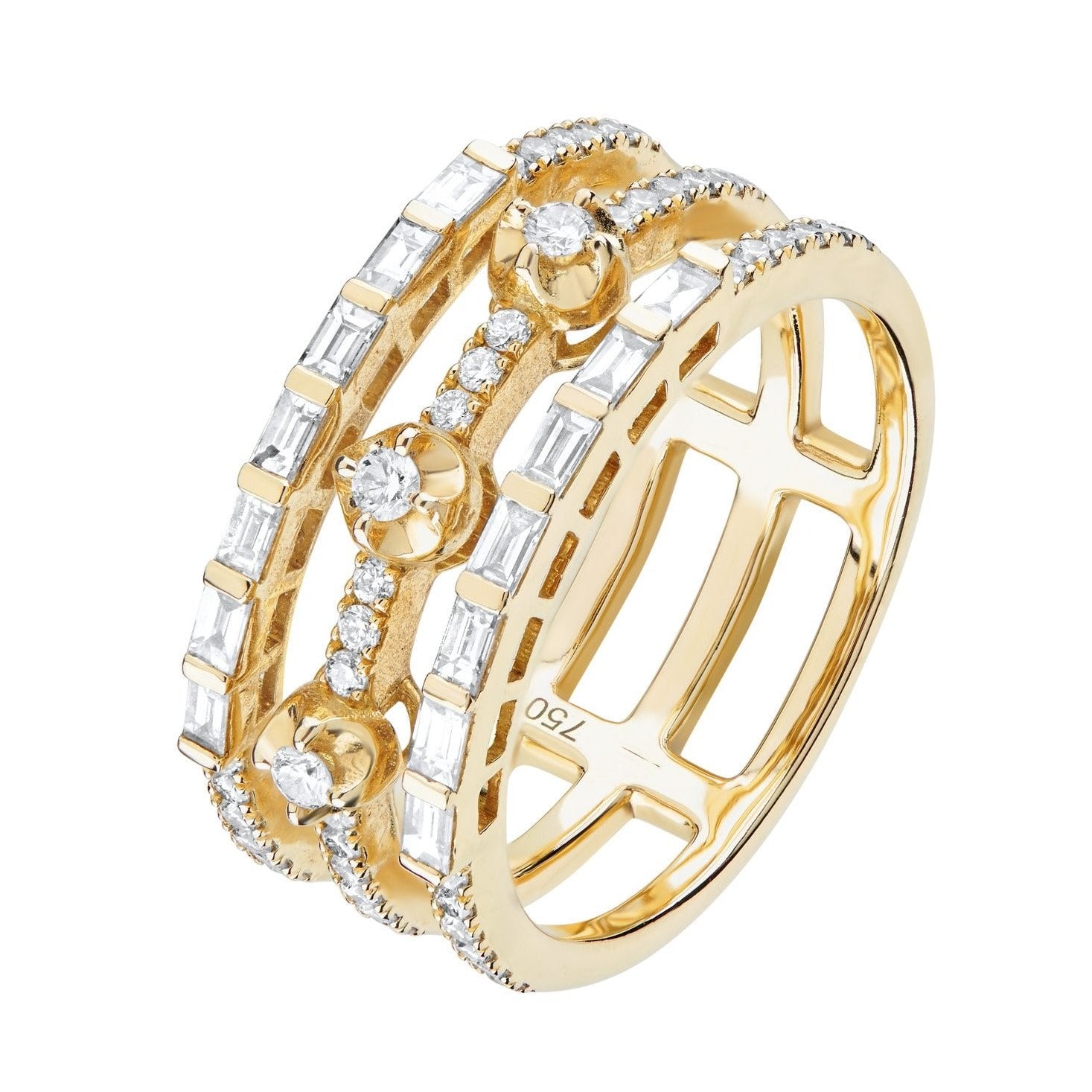 BAGUETTE | Round & Baguette Diamond 3 Bar Ring