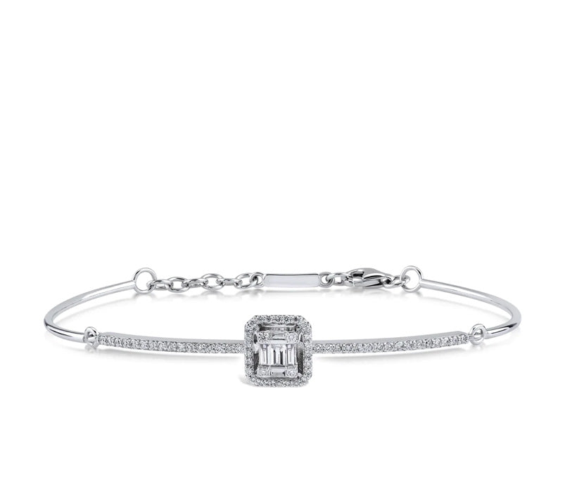 BAGUETTE | Diamond Halo Link Bangle