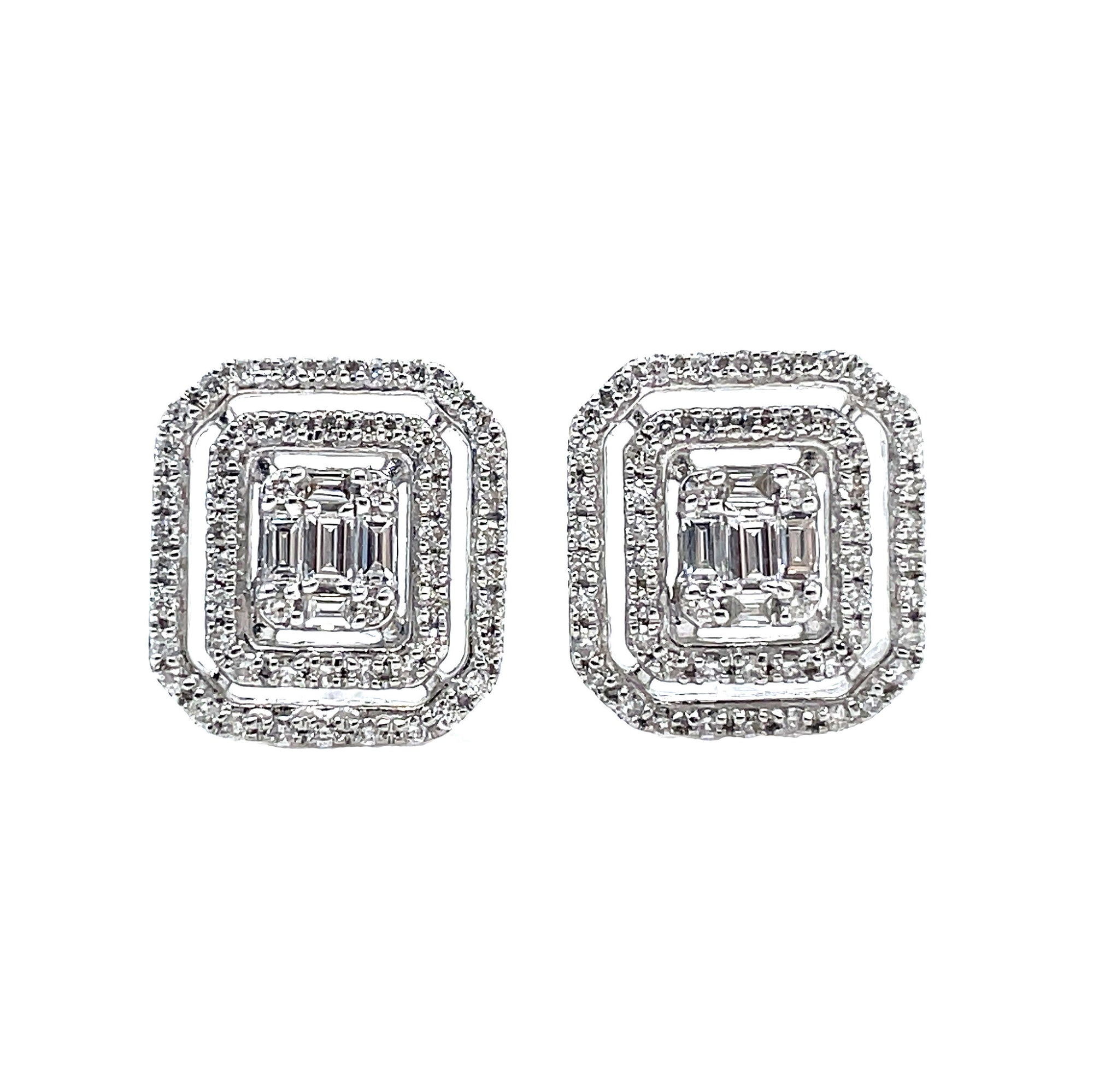 BAGUETTE | Diamond Double Halo Earrings