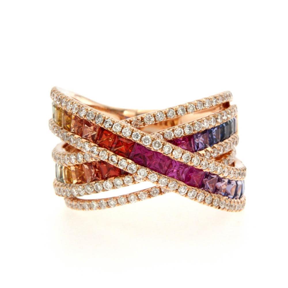 Crossover doble engastado con diamantes multicolor en oro rosa