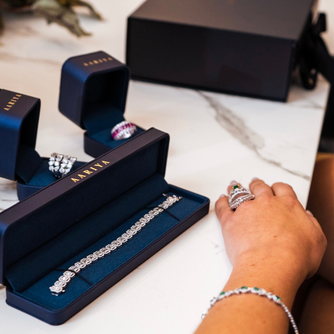 At Aariya, we believe true luxury lies in your personal touch. We take immense pride in being artisans of bespoke jewellery, crafting each piece with meticulous attention to detail. When you choose us you embark on a journey of co-creation, where we work closely with you to bring your vision to life. From selecting the perfect diamonds to designing unique settings, we take every step with utmost care to ensure your jewellery reflects your style and emotions.
