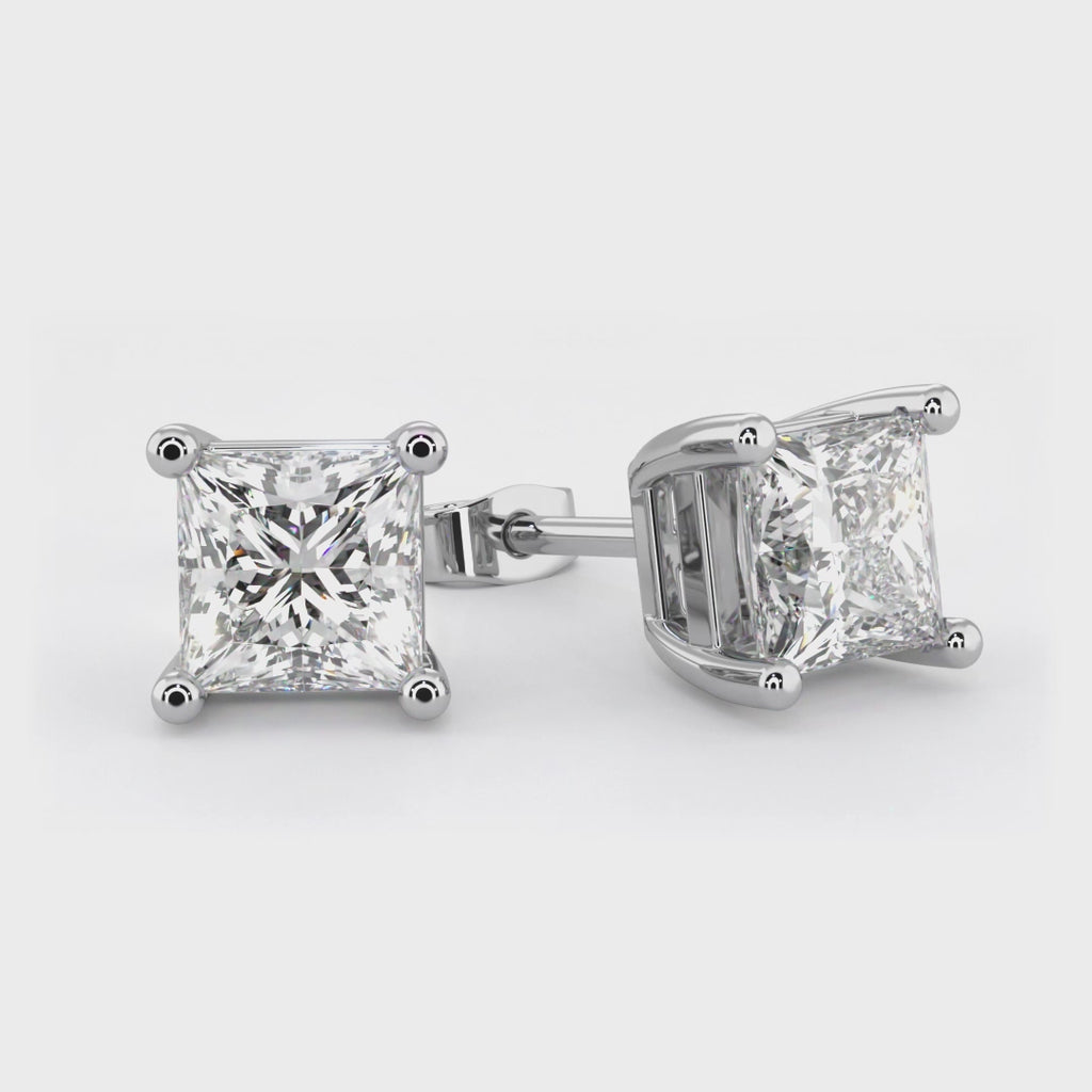 These captivating earrings feature a singular, meticulously cut princess-cut diamond that radiates brilliance. Available in a range of sizes, you can choose the perfect carat weight to suit your individual style and preference.
