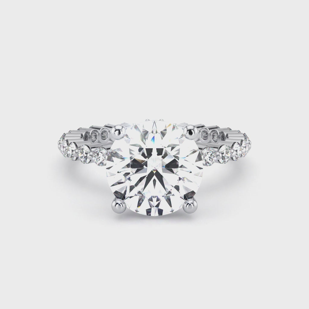 Spica has a sparkling round diamond centre stone, complimented by round diamonds in a unique spaced dot setting. The diamond under halo adds extra brilliance and a touch of luxury.