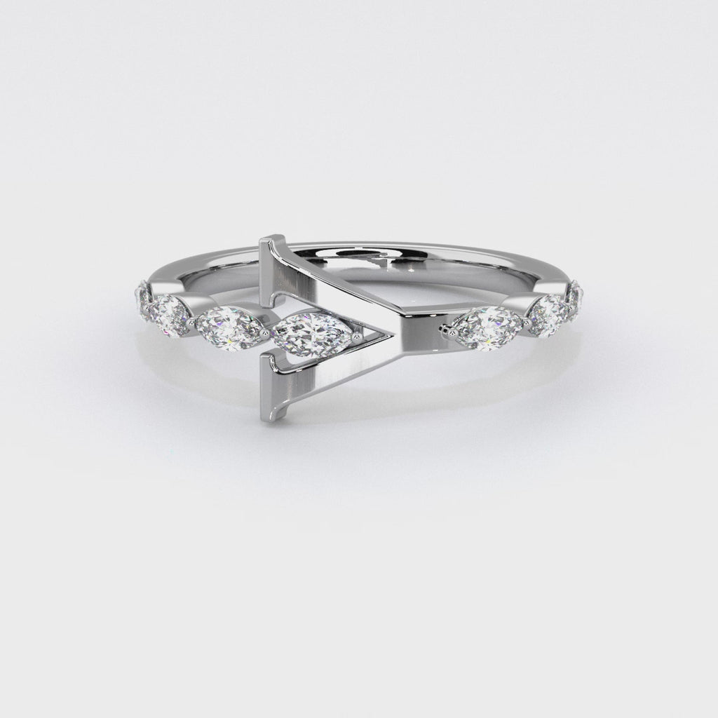 Crafted from 18ct white gold, this exquisite ring showcases a captivating design that draws the eye with modernity and uniqieness. A plain white gold "Y" as its centre point and marquise iamonds gracefully trail down the band, 50% set.