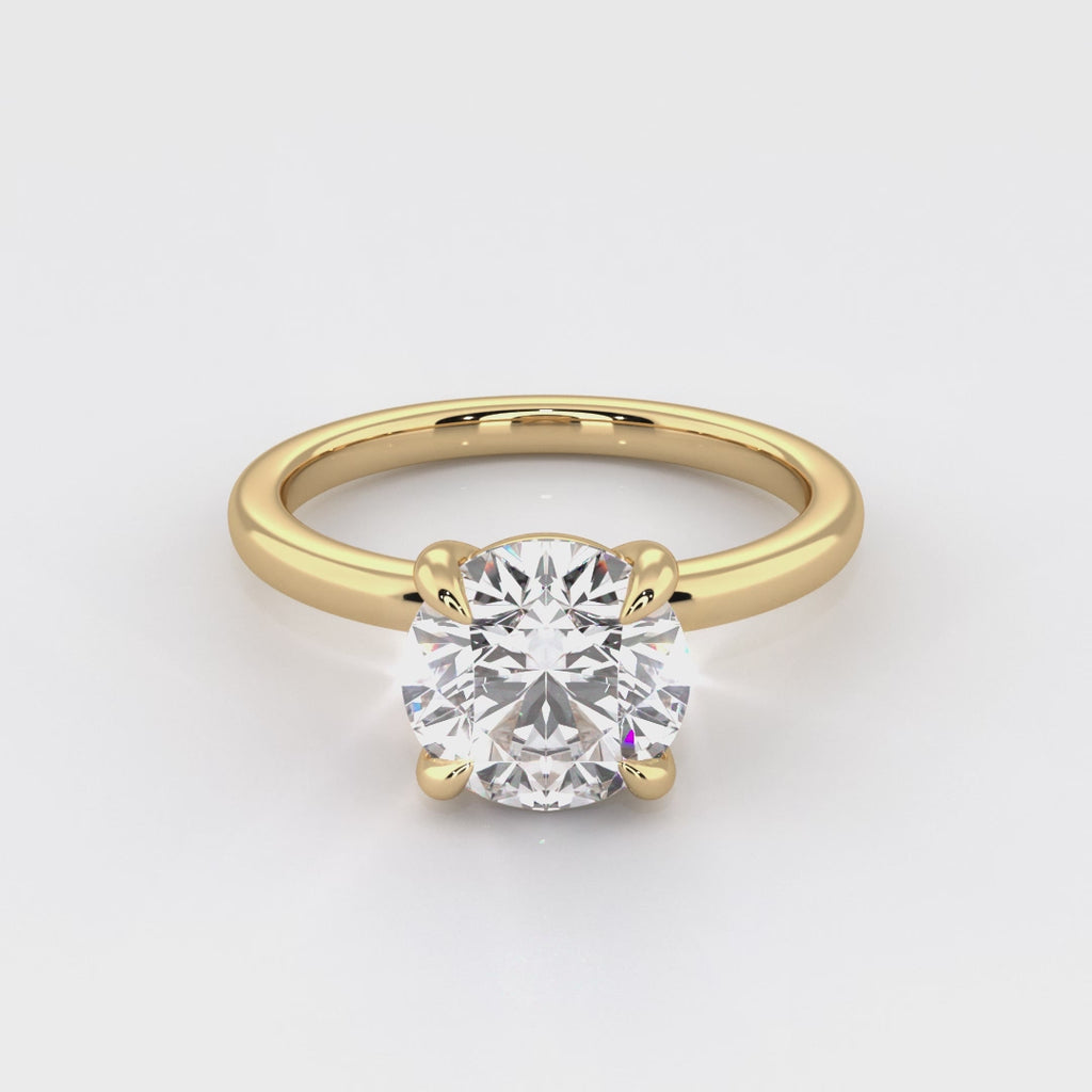 This breathtaking piece showcases the beauty of a round-cut diamond, flawlessly set in warm yellow gold, radiating both elegance and sophistication. The centrepiece of this enchanting ring is a brilliant round diamond, meticulously hand-selected for its exceptional quality and captivating sparkle.
