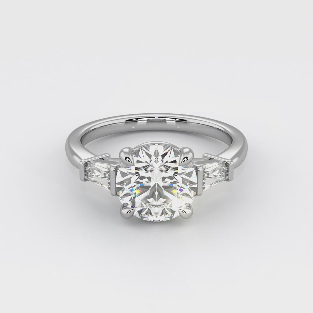 A beautiful round diamond engagement ring, with diamond set shoulders in a 50% setting. This setting is one of the most popular designs simply because of the elegant aesthetic it offers, a round diamond engagement ring has been a staple for many generations and will continue to do so.