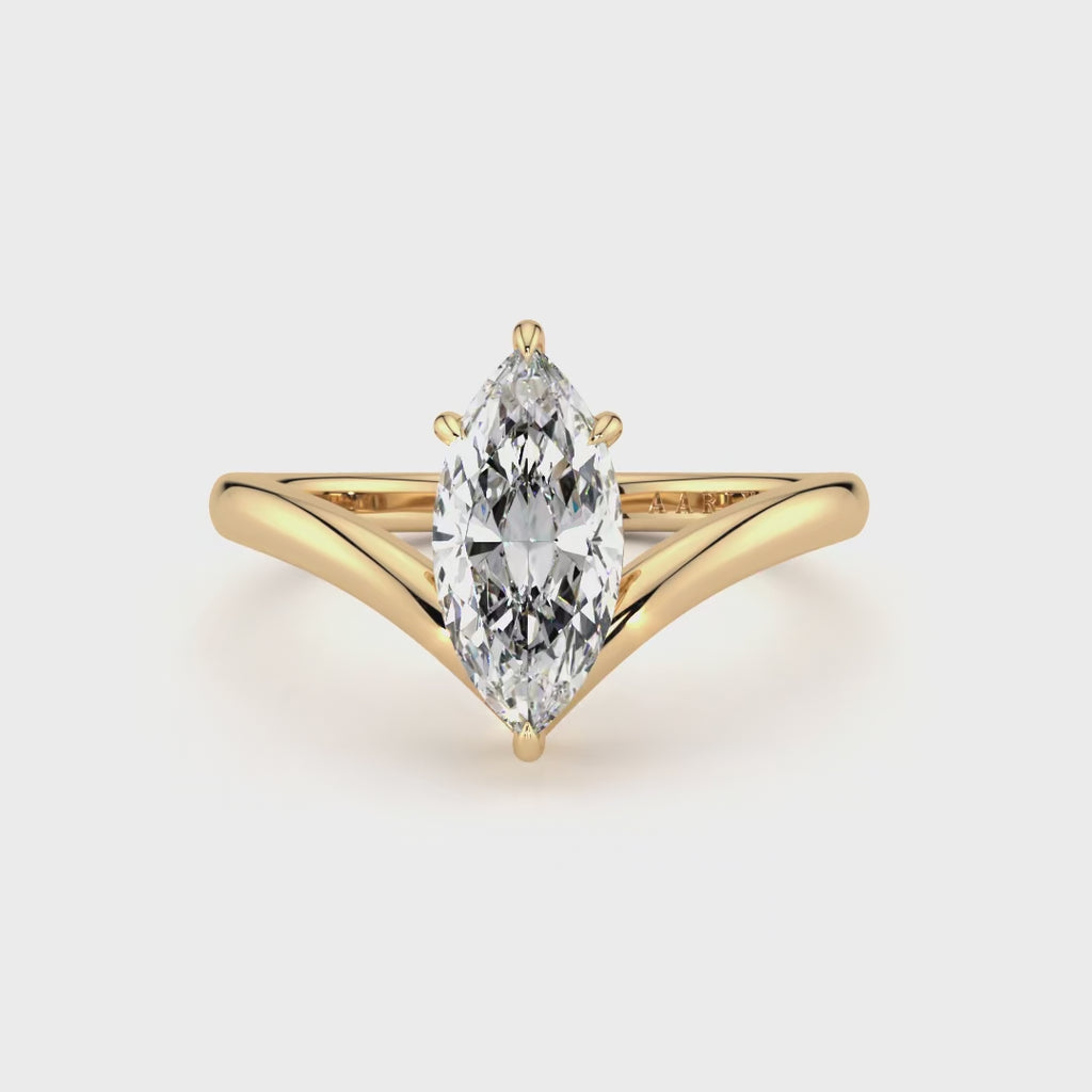 This marquise diamond ring showcases a precisely cut marquise diamond, engineered to optimise light dispersion across its faceted surface. The distinctive pointed marquise geometry elongates the finger whilst delivering superior scintillation compared to traditional cuts. Offered in four metallurgical options, yellow gold, white gold, rose gold and platinum, each setting is constructed to exacting standards for durability and aesthetic refinement.