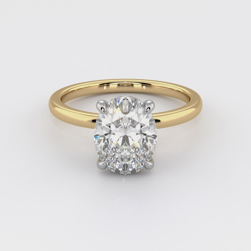 Enhancing the allure of Mira is a delicate diamond under halo, gracefully encircling the oval cut diamond.