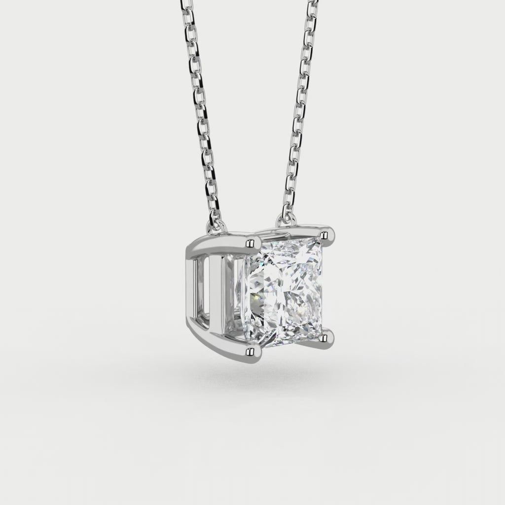 Our princess diamond pendant showcases a meticulously cut princess diamond, offering exceptional brilliance and modern elegance. Its sharp, symmetrical lines create a contemporary look that enhances any ensemble. Expertly crafted to maximise light reflection, this pendant is perfect for those seeking a refined yet striking accessory that complements both daily wear and special moments.
